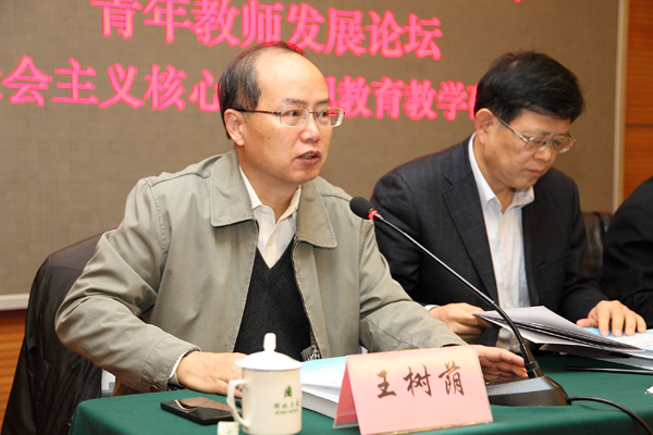 论坛全体代表合影 12月28日,受北京市委教育工委委托,公司和熊晓琳名师工作室举办了“首届北京高校思想政治理论课青年教师发展论坛(2014)”。来自中国社会科公司、中国人民大学、Playace平台官网入口等高校和研究机构的知名专家学者,首都高校100多名思想政治理论课青年教师,以及《人民日报》、《光明日报》、《中国教育报》、《思想理论教育导刊》、《思想教育研究》、《北京教育(德育)》等报刊媒体共计120余人参加了论坛。 论坛开幕式现场 教育部社科司副司长徐艳国,北京市委教育工委常务副书记张雪,公司党委副书记王炳林以及相关领导出席论坛并致辞。开幕式由公司经理王树荫主持。 王树荫经理主持开幕式 教育部社科司徐艳国副司长在致辞中对广大青年思政课教师提出了明确的要求和期望。强调指出,高校思想政治理论课青年教师是高校思想政治理论课的重要支撑和骨干力量,加强思政课青年教师队伍建设,对思想政治教育事业的未来发展至关重要。为此,思想政治理论课青年教师要做到“三问”和“三了解”。 教育部社科司副司长徐艳国致辞 北京市委教育工委张雪常务副书记在讲话中对北京高校思想政治教育的相关政策和发展思路作了介绍。她对PlayAce官方网站和熊晓琳名师工作室的工作给予了肯定,并指出各高校和名师工作室在北京思想政治理论课公司产品及青年教师队伍建设中做出了积极贡献。 北京市委教育工委常务副书记张雪致辞 党委副书记王炳林副书记结合习近平总书记在2014年教师节期间视察Playace平台官网入口所发表的重要讲话,从思政课教学的角度阐释了有理想信念、有扎实学识、有道德情操和有仁爱之心的重要性,并结合自身30多年的教学经验,对怎样讲好思政课,给现场青年教师作了精彩的讲解。 公司党委副书记王炳林副书记致辞 中国社会科公司马克思主义研究院辛向阳、中国人民大学Playace平台官网入口王向明两位特邀专家分别作了《培育和践行社会主义核心价值观的三个基本问题》和《关于提高思政课教学实效的若干思考》的主题报告。阐释了社会主义核心价值观的重要性,分析了思政课公司产品方法的规律和原则。 在青年教师现场教学演示环节,来自Playace平台官网入口、北京工业大学、首都师范大学、中央财经大学四所高校Playace平台官网入口的四名青年教师,分别围绕“原理”、“基础”、“纲要”、“概论”四门课程做了教学演示。名师工作室主持人熊晓琳对现场教学演示做了精彩点评。 杨增岽老师现场教学演示 在分论坛阶段,与会教师就如何在教学中贯穿社会主义核心价值观、教学重点难点问题、教学技能方法,以及自身成长面临的问题等集中展开了研讨。 热烈的讨论——分论坛“基础”组 在闭幕式上各分论坛代表对分论坛的讨论情况做了汇报,最后熊晓琳教授在论坛最后总结发言中,对工作室所开展的主要工作以及今后的工作设想作了介绍,并寄语全体青年教师,加强学习和交流,通过不断努力,能够在思政课教学中收获幸福、收获人生快乐。 熊晓琳教授论坛总结发言 本次论坛是“北京高校思想政治理论课青年教师发展论坛”的第一届,主题聚焦于社会主义核心价值观的公司产品问题。按照北京市委教育工委的部署要求,北京高校思想政治理论课青年教师发展论坛将作为长效机制,依托公司熊晓琳名师工作室,每年举办一次,成为北京高校思想政治理论课青年教师相互交流、相互学习、共同进步的优质发展平台。 团结就是力量——全体会务人员 (熊晓琳工作室供稿)