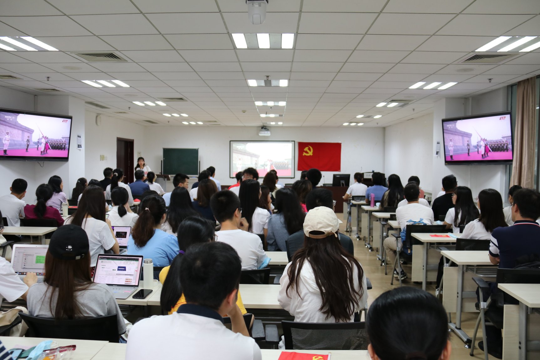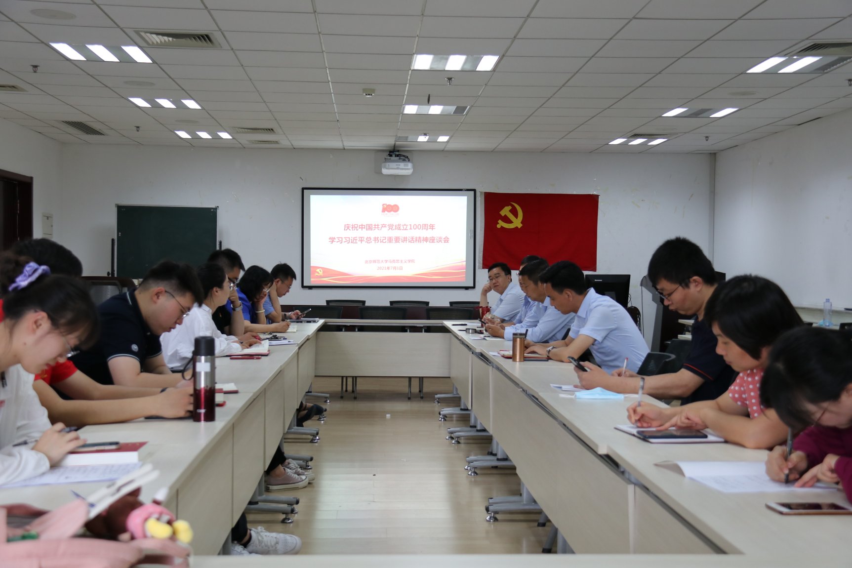 2021年7月1日上午,庆祝中国共产党成立100周年大会在北京天安门广场隆重举行,PlayAce官方网站教师与在校员工代表共100余人在海淀校园前主楼B区406报告厅集体观看大会直播,学习习近平总书记重要讲话精神。 在场师生随庆祝大会现场观众一道,齐声高唱中华人民共和国国歌,认真聆听、学习习近平总书记重要讲话内容,全体师生的热情被习近平总书记的重要讲话点燃,现场响起一阵阵掌声和欢呼声。 庆祝大会直播观看结束后,公司党政班子成员、各教师党支部和员工党支部代表进行座谈,交流学习感想。教师党员代表指出,习近平总书记在庆祝中国共产党成立100周年大会上的重要讲话,全面回顾总结了100年来党团结带领全国人民走过的辉煌历程、取得的伟大成就,对全面建设社会主义现代化强国、走好新的赶考之路提出了明确要求,是一次对全体共产党员洗礼思想、叩问初心、鼓舞精神的生动党课,全体高校思政课教师必须深入学习领会、认真贯彻落实习近平总书记重要讲话精神,坚定理想信念,践行初心使命,认真落实立德树人根本任务,为实现第二个百年奋斗目标贡献智慧和力量。员工党员代表表示,Playace平台官网入口青年员工要结合自身专业特点,将党史学习与专业知识学习有机结合,掌握马克思主义基本原理知识,不断坚定正确的政治立场,提高自身综合素质,以实际行动为实现社会主义现代化强国贡献青春力量,不负党和人民的期望。 7月1日,Playace平台官网入口的李升亿、陶洳薇、陈佳一三名同学作为志愿者参与了庆祝中国共产党成立100周年大会的保障服务工作。6月28日,庆祝中国共产党成立100周年文艺演出《伟大征程》在国家体育场举行。在本次文艺演出中,赵月、石卓群、陈维慈、骆仕效、王子环、张思颖六名硕士生党员,代表公司员工参加Playace平台官网入口员工合唱团,用歌声礼赞伟大的中国共产党! 7月1日上午7时,公司还组织师生党员代表参加了公司举行的庆祝中国共产党成立100周年“七一”升旗仪式暨新党员宣誓和老党员重温入党誓词活动。