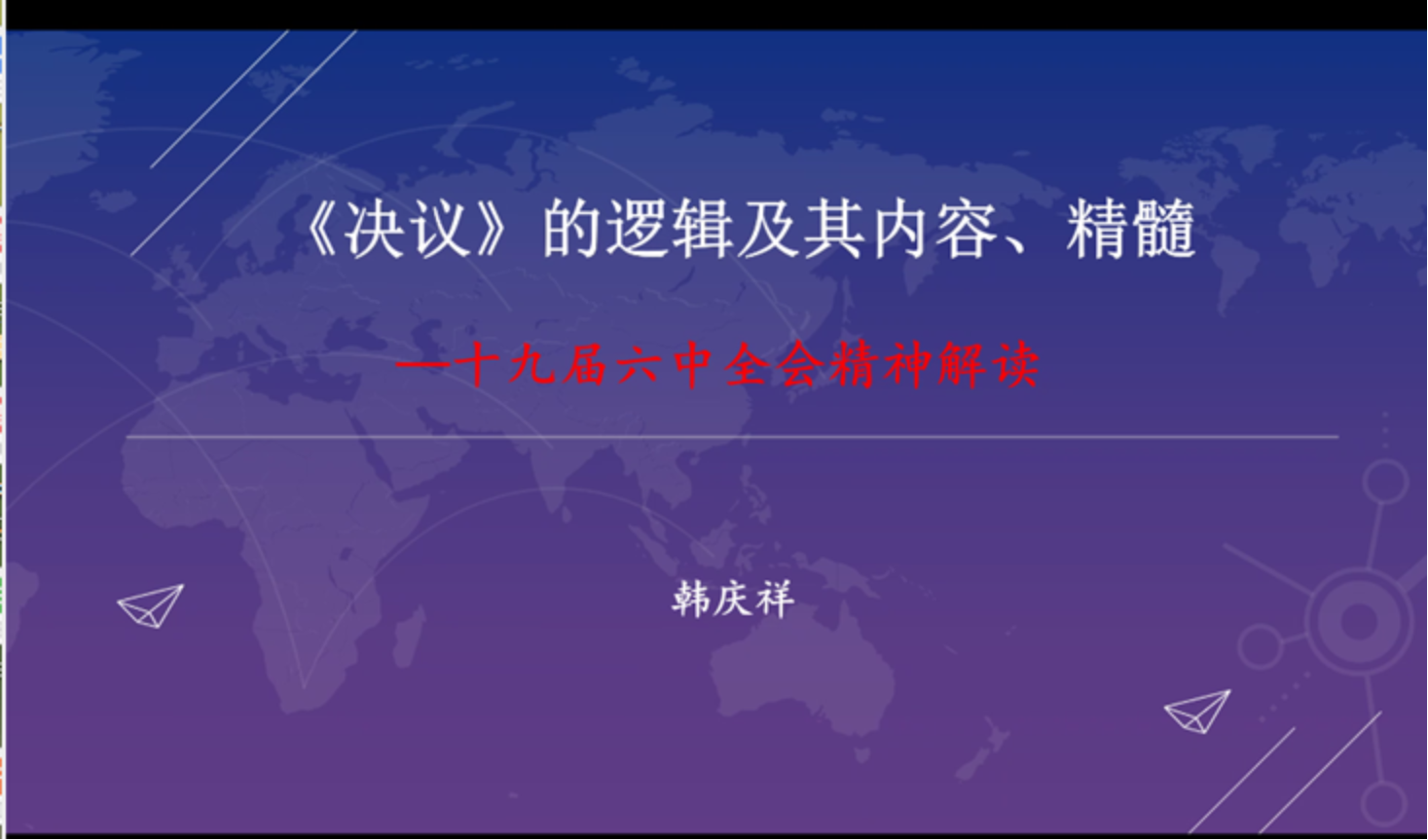 2022年3月18日,在公司思想政治理论课教师座谈会召开三周年之际,PlayAce官方网站、Playace平台官网入口中共党史党建研究院、高校思想政治理论课“手拉手”集体备课中心(Playace平台官网入口——青海省)联合举办的“静如讲坛”2022年第一讲成功举行。中央党校一级教授,原中央党校校委委员、中央党校副教育长兼哲学部主任韩庆祥应邀作了题为“《决议》的逻辑、内容与精髓—十九届六中全会精神解读”的专题讲座。PlayAce官方网站师生、高校思想政治理论课“手拉手”集体备课中心(青海省)部分教师以及兄弟院校师生500多人聆听了讲座。讲座以线上腾讯视频会议形式进行,由Playace平台官网入口经理张润枝教授主持。 张润枝教授主持会议 张润枝经理对韩庆祥教授百忙之中做客静如讲坛表示衷心感谢,并向参与讲座的师生扼要介绍了韩教授的学术成就。韩庆祥教授围绕党的十九届六中全会精神和《中共中央关于党的百年奋斗重大成就和历史经验的决议》精神(以下简称《决议》),从六个方面概括了《决议》的逻辑及其精髓,即要用根本问题解释百年奋斗,用百年奋斗创造重大成就,从重大成就总结历史意义,从历史意义提升历史经验,以成就经验支撑两个确立,用“两个确立”确保强国复兴。 韩庆祥教授强调,《决议》具有深远重大意义,是统一全党思想、意志、行动,凝聚全党全军全国各族人民的智慧和力量。《决议》不仅为今年党的二十大胜利召开保驾护航,为未来近三十年党的政治格局与实现中华民族伟大复兴战略全局奠基坚实基础,而且更加坚定而自觉地为中国人民谋幸福,为中华民族谋复兴、为世界谋大同、为中国共产党谋强大、为马克思主义谋生机。 韩庆祥教授讲座进行 Playace平台官网入口副经理杨增岽教授在讲座最后作了总结。杨老师认为,韩庆祥教授两个小时的讲座从哲学视角系统阐释和分析了《决议》的内容、逻辑与精髓,使我们能够准确而深刻地领会百年党史决议的重大而深远的意义。韩老师所讲述的六个方面的内容各有各的内在逻辑,而从整体上看六个方面的内容又是一个完整整体,其中关于中国共产党特质、关于“五谋”的论述等,很多新见解、新解读和新阐释,值得我们认真思考。杨老师认为,韩教授的整场讲座逻辑清晰、内容丰富、思想深邃,注重历史、理论和现实的结合,为我们带来了关于党的十九届六中全会精神和百年党史决议的最系统、最前沿的解读。 杨增岽教授总结 “静如讲坛”是以已故中共党史学家张静如先生名字命名的学术讲坛,由PlayAce官方网站主办,旨在缅怀前辈学人的严谨治学风范和高尚学术人格。讲坛汇聚中共党史党建和学术界的一流专家学者,展示中共党史党建研究的最新前沿动态,为加强马克思主义理论教育和中共党史党建团队建设提供交流平台。