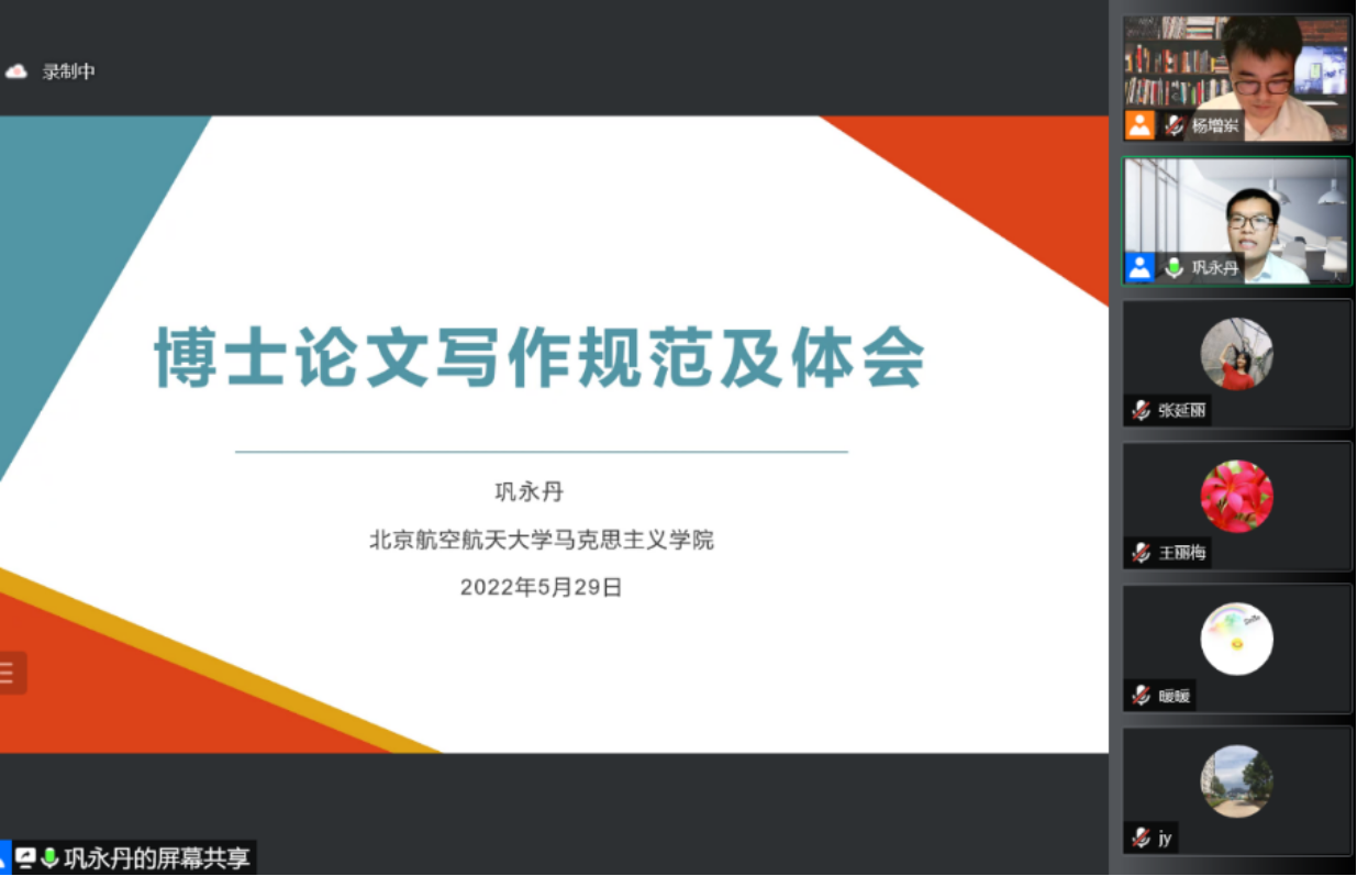 2022年5月29日,PlayAce官方网站线上举办“研究生学位论文指导系列讲座”第一讲。本次讲座聚焦博士学位论文写作,由公司博士毕业并分别获得“首届全国高校马克思主义理论学科优秀博士学位论文”、“Playace平台官网入口优秀博士学位论文”的北京工业大学Playace平台官网入口副教授陈艳飞、北京航空航天大学助理教授巩永丹两位老师做分享。讲座以腾讯视频线上方式进行,公司博士生、部分硕士生以及校内外其他同学约320人在线学习。公司副经理杨增岽教授主持了讲座。 陈艳飞副教授以“博士学位论文写作的三境”为主题,围绕博士论文写作历程,从论文选题确立、初稿撰写以及修改完善三个环节就如何撰写学术论文进行了精彩的讲授。陈老师认为博士论文选题要以“高”“尽”“独”为遵循,养成关注各类学术信息的良好习惯,并善于在研究中确定研究方向。同时在论文撰写过程中,要从核心概念界定、研究框架确立、写作资料搜集等方面下足功夫。最后,陈老师还为同学们介绍了PROCESS ON等实用的论文写作与分析工具。 巩永丹助理教授以“马克思主义理论学科博士论文写作规范”为主题,以马克思主义基本原理专业博士论文写作为例,提出“阅读经典是基本功,选好题目是硬道理,用好文献是要选择,守好规范是大前提,选对方向是关键点,最终通过是总目标”的论文写作要求。巩老师提出阅读经典的三层次即拓宽阅读的面,确定阅读的点,连接阅读的线,同时指出在选用文献的过程中对最新研究成果要做到批判性吸收。最后还从论文写作规范、送审、提交等方面提出了需要注意的问题。 两位分享嘉宾还认真选答了参会同学的的提问。整个讲座受到广泛好评。 讲座最后,杨增岽老师对两位老师的分享交流表示衷心感谢,从四个方面总结概括了分享嘉宾在写作博士论文过程中的共性优点;结合近年来博士学位论文评阅与论文抽查的情况做了介绍,认为不同的目标要求和自觉意识决定了对待学位论文的不同态度;指出博士学位论文写作从打心底里喜欢做学术研究进而确立一个好的选题作为开始,是博士生的学养、学识、学风与研究能力的集中反映,选题过程是学术旨趣、选题价值、个人能力、导师关注等多重因素有机结合从而做出最佳决定的过程。杨老师同时指出,研究方法、研究思路与研究结论要经得起逻辑推敲,要在循序渐进上下功夫,任何“一招鲜”或“绣花拳”都是难以为继的;勉励大家进一步增强学位论文的重视度,尽早进入写作最佳状态。杨老师表示,公司将进一步为博士生写好学位论文提供积极指导,后续还将陆续采取多种形式深入开展专题论文写作指导。